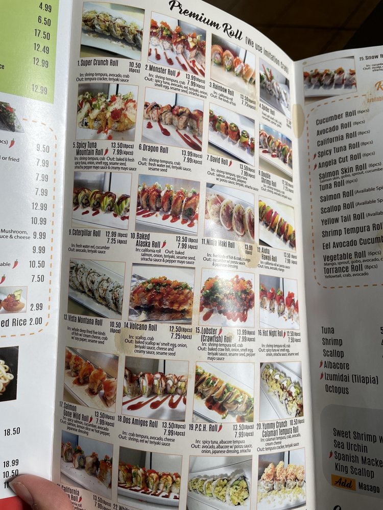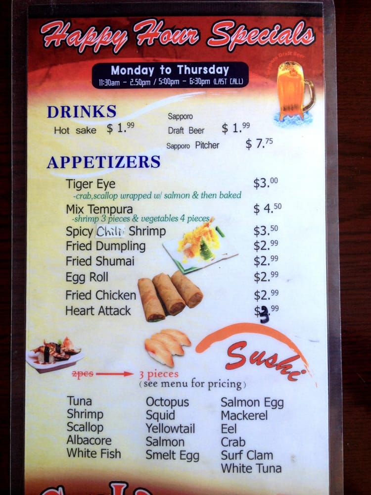 Served on shrimp tempura, spicy tuna. Out salmon, avocado, jalapeno with ponzu sauce, teriyaki, Srirachasauce.