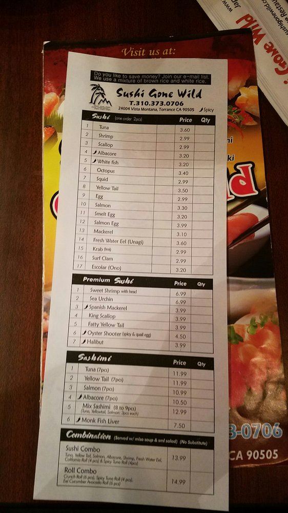 Sushi Gone Wild Menu (Update 2025)